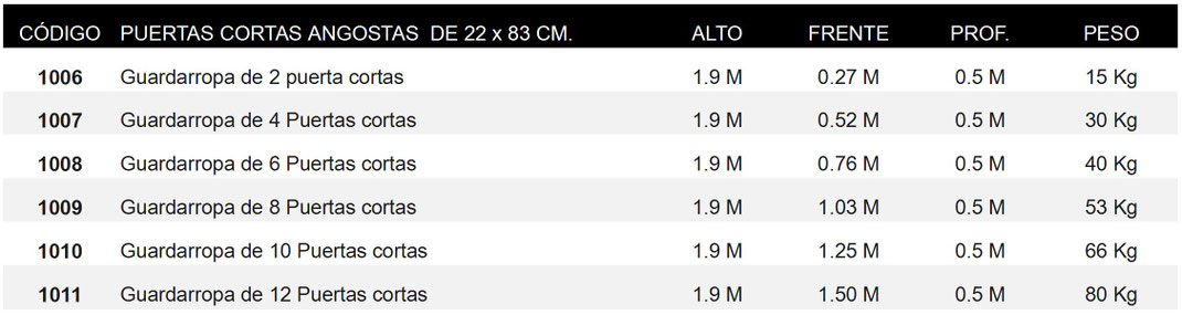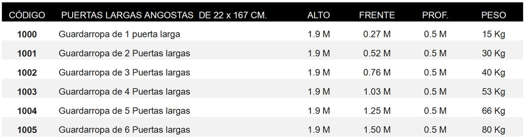 COD. 1000 GUARDARROPA DE 1 PUERTA LARGA